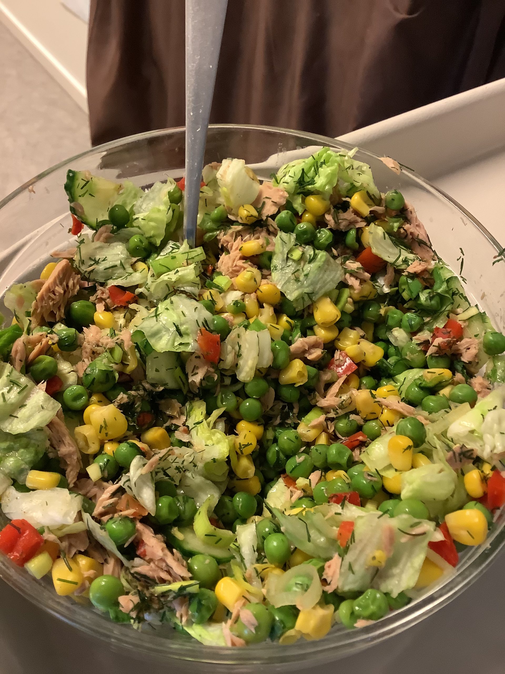 Fredag | Smörgås, knäckebröd, ägg, pålägg, grönsak, frukt, mjölk/vatten | Grillade kycklingfiléer som marinerats och sedan grillas i ugnen serveras med ris, dressing och en fräsch sallad. Hoppas att ni alla får en fin helg och var rädda om varandra! | Smoothie med banan och frukt, smörgås |